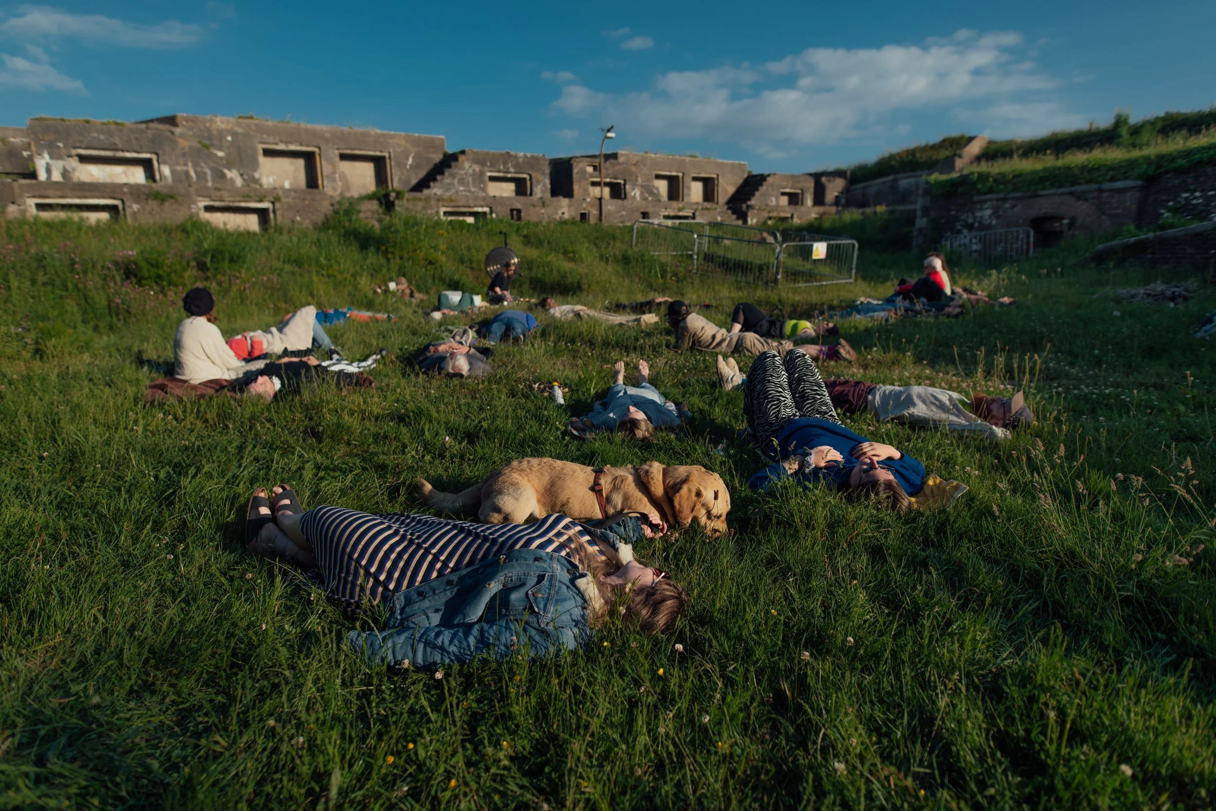 Reclaim Rest sound bath performance, commissioned by Molly McCarthy and Rame Projects, held at Grenville Battery, a 1792 military redoubt inaccessible to the public for many years. Image credit: Dom Moore.